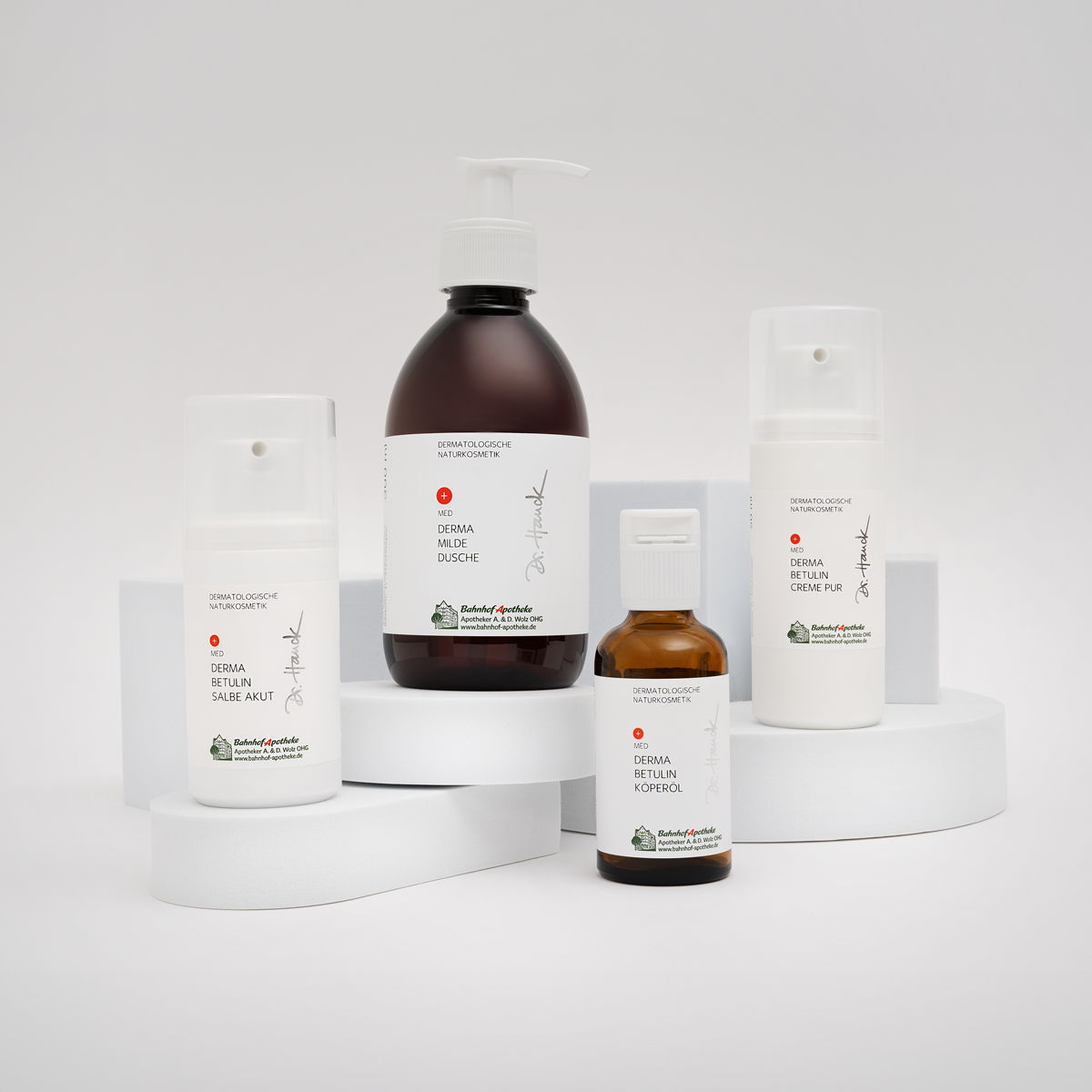 Egal ob bei Neurodermitis, atopischer Dermatitis oder besonders strapazierter Haut – die dermatologische Pflegeserie der Bahnhof-Apotheke wurde speziell für die Bedürfnisse empfindlicher und barrieregestörter Haut entwickelt.