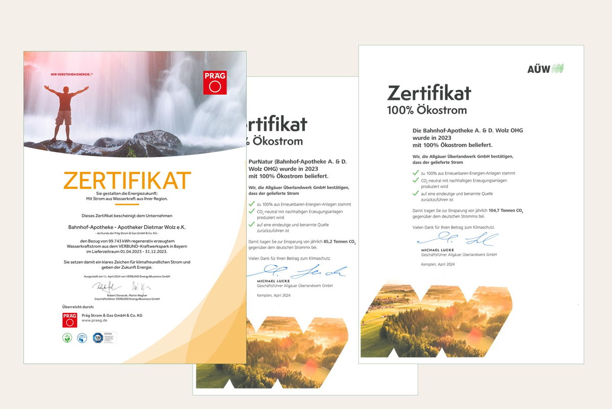 2016 werden die Bahnhof-Apotheke und PurNatur klimaneutral durch CO2-Kompensation.