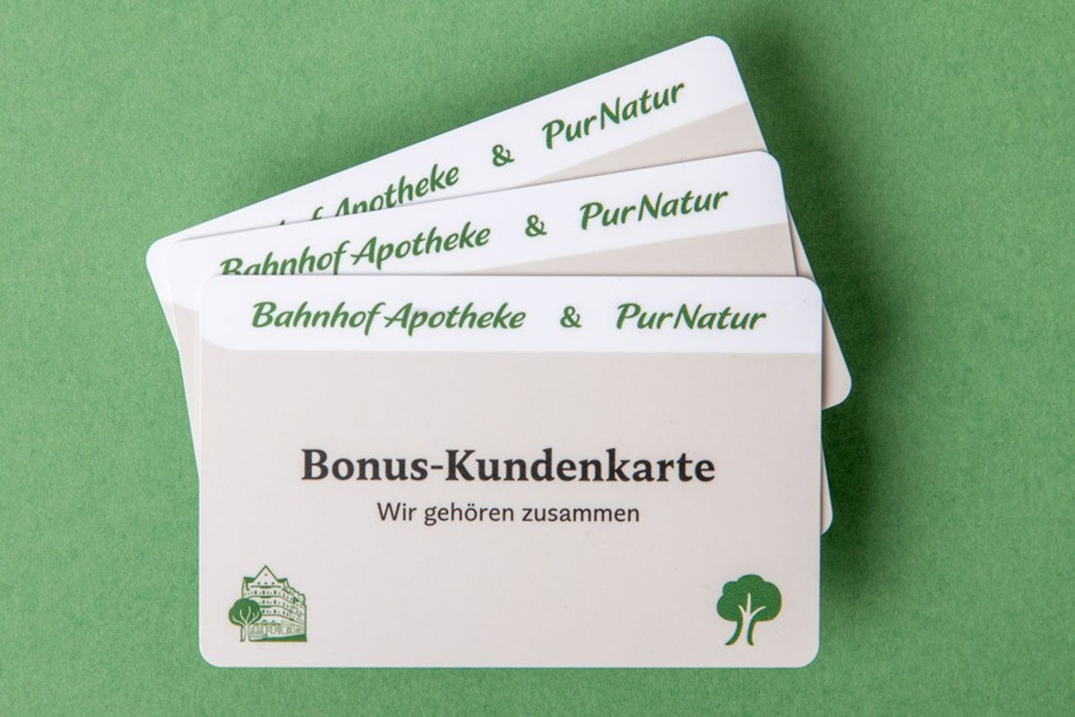 Mit der Kundenkarte der Bahnhof-Apotheke können Sie nicht nur finanziell bei Ihrem Einkauf profitieren, sondern erhalten auch Vorteile für Ihre Gesundheitsberatung, die uns besonders am Herzen liegt und für die wir uns bewusst Zeit nehmen.