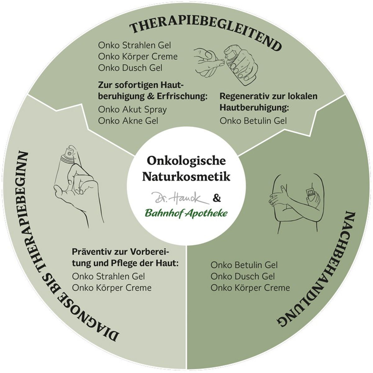 Egal ob vor, während oder nach einer Krebsbehandlung – die onkologische Pflegereihe der Bahnhof-Apotheke und Dr. Hauck wirkt sanft auf stark angegriffene Haut.