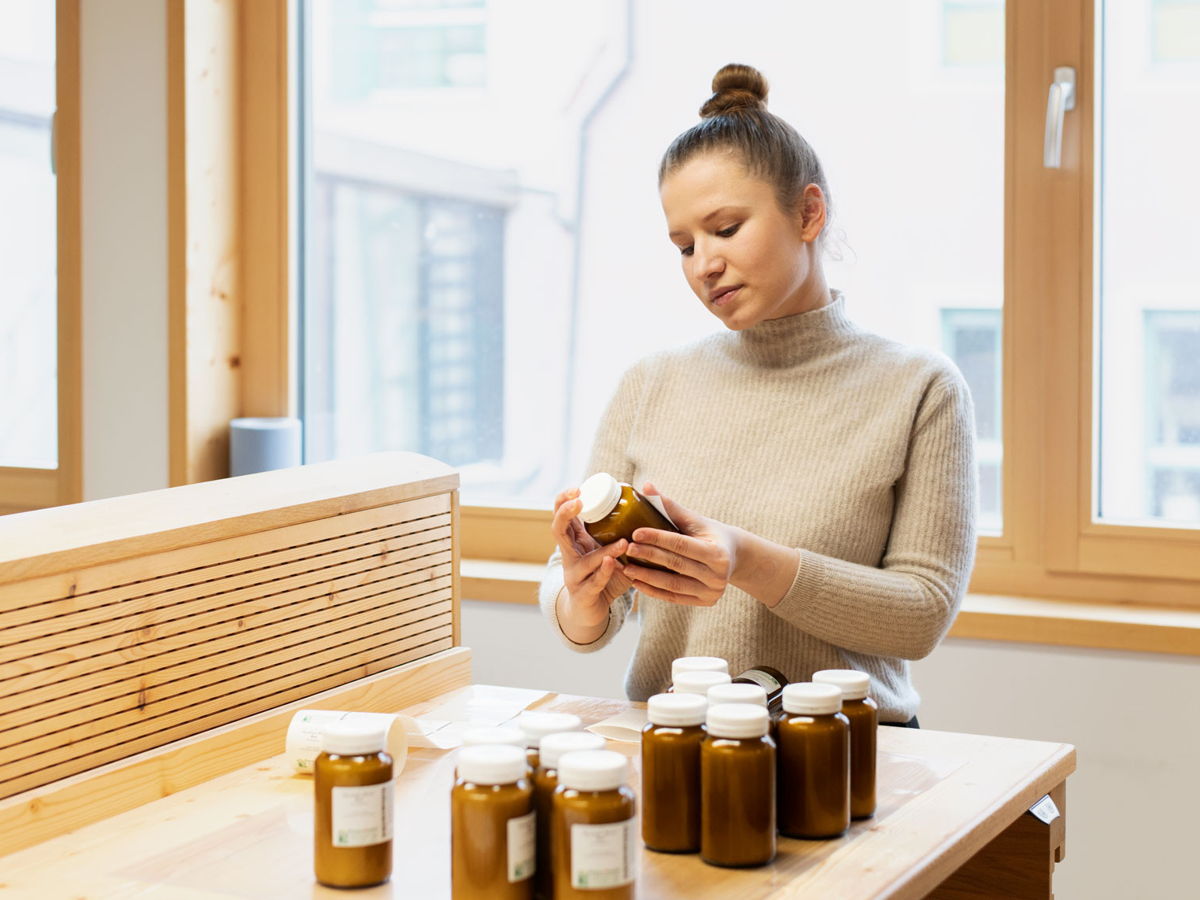 Wir hinterfragen gezielt, was es bedarf, um sichere und wirksame, kurzum hochqualitative, Produkte herzustellen. Das gilt für die Herstellung von Rezepturarzneimitteln wie auch für die Weiterentwicklung unserer Aromamischungen. Dafür führen wir eine aufwändige Analytik und mehrstufige Prüfverfahren durch.